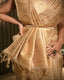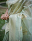 This beautiful saree with geometric and floral butta, designed to look effortless without a border.The intricate zari work on the pallu, the detailed Alfi Buta work, the shimmering glaze, all makes it a perfect choice for those who adore sophistication with a touch of heritage.Featuring light blue linen tissue saree...